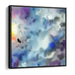 The primary color palette of soothing blues dominates the canvas, creating a serene and calming effect that envelops the viewer in tranquility. Complementing these blues are secondary hues of purple, black, and hints of yellow, adding depth and intrigue to the composition. The soft gradients and fluid transitions between colors mimic the natural flow of cosmic elements, enhancing the otherworldly feel of the piece.