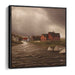 Introducing the captivating canvas art print titled "Stormy Resilience," a poignant depiction of a rural landscape bracing for an impending storm. This evocative artwork centers around a striking red barn, standing resolute amidst a cluster of farm buildings, set against a backdrop of ominous, swirling clouds.