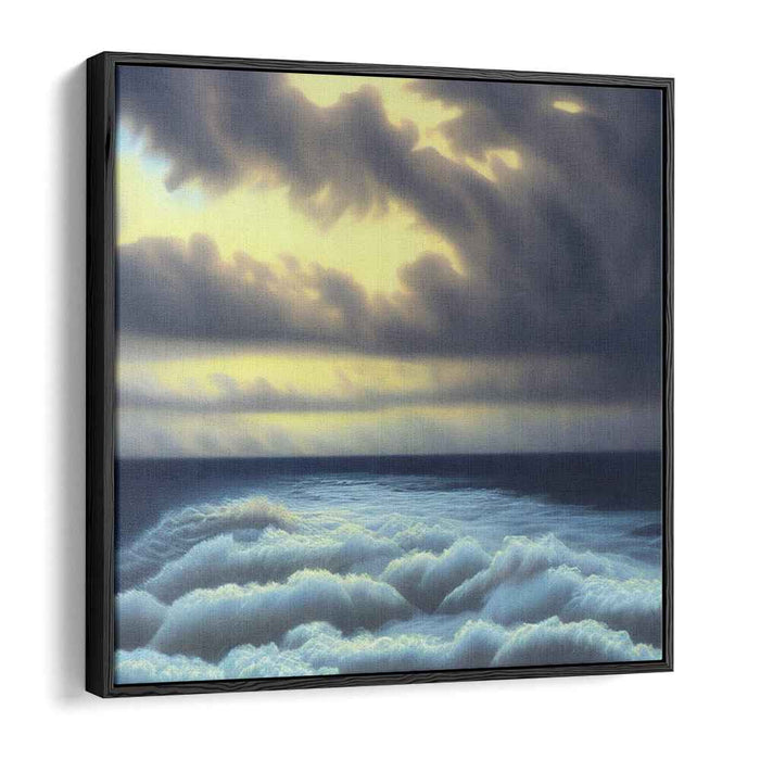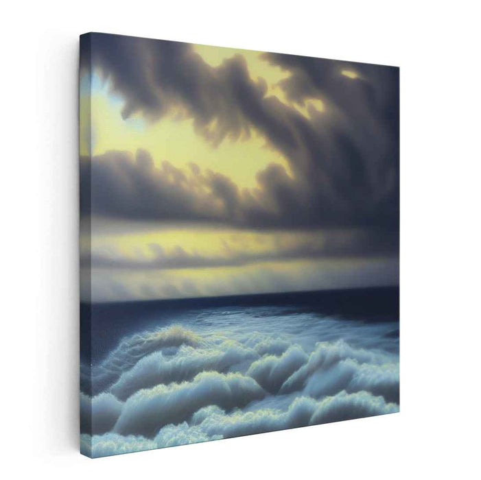 Introducing 'Stormy Skies Ahead,' a mesmerizing canvas art print that plunges viewers into the raw power and breathtaking beauty of nature, showcasing a turbulent ocean under a dramatic, brooding sky. This compelling artwork captures the intense interaction between the churning sea waves and the ominous clouds above, creating a scene of immense dynamism and atmospheric tension.