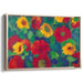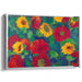 The canvas comes alive with a rich palette of primary colors, showcasing the vivid reds and yellows of the sunflowers and poppies against a backdrop of lush greens and blues. The impressionistic style of the painting is evident in the loose and expressive brushstrokes that convey the dynamic movement of the flowers swaying in the breeze.
