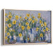 Step into a world of radiant beauty with "Sunflower Tapestry," an exquisite Impressionist sunflower still life canvas art print that promises to brighten any space with its vibrant energy and joyful aura. This captivating artwork showcases a lively arrangement of sunflowers delicately placed in a series of white vases, capturing the essence of these bright yellow flowers in a masterful display of color and light.