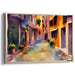 This artwork invites viewers to envision a leisurely stroll down this enchanting street, evoking a sense of peace and contemplation. Ideal for a living room or dining area, this piece's vibrant colors and tranquil mood make it a perfect addition to spaces meant for relaxation and appreciation of art.