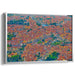 This piece exudes warmth, nostalgia, and an inviting allure, making it a perfect addition to spaces like a living room or study where its dynamic composition and intricate details can be admired up close. The lush greenery interspersed within the urban sprawl adds depth and vitality to the artwork, offering a refreshing contrast to the cityscape.