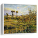 The setting sun casts an enchanting glow on the landscape, illuminating the trees and casting long shadows across the field. Pissarro's ability to capture the fleeting beauty of a sunset transforms the painting into a timeless meditation on the passing of time. As the day draws to a close, a sense of stillness and contemplation permeates the scene.