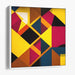 Introducing 'Sunset Embers Fusion,' an electrifying abstract canvas art print that commands attention with its striking blend of geometric shapes and vivid colors. This masterpiece is a visual delight, with a dominant vibrant yellow hue that radiates energy and warmth throughout the composition.