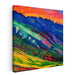 The artist's bold, sweeping brushstrokes skillfully depict the rugged texture of the terrain, while the vibrant hues of orange and blue, complemented by green, red, and yellow accents, create a visual symphony that evokes a sense of wonder and admiration.