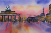 Immerse yourself in the enchanting world of 'Sunset Serenade at Brandenburg Gate,' a contemporary watercolor gem that encapsulates the charm and vibrancy of cityscapes at dusk. Acquire this piece to add a touch of ethereal beauty and modern artistry to your collection, and let the allure of the Brandenburg Gate illuminate your space with its timeless allure.