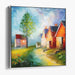 Introducing "Sunset Strokes Village," a mesmerizing impressionist village canvas art print that transports viewers to a tranquil village bathed in the gentle embrace of sunlight, exuding warmth and serenity. This captivating artwork captures a row of charming cottages painted in inviting hues of red and orange, harmonizing beautifully with the lush greenery enveloping them.