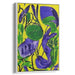 Introducing 'Sunshine Tapestry: Vibrant Foliage on Sunny Yellow,' a mesmerizing canvas art print that brings to life a lush and dynamic portrayal of plant life, teeming with energy and a kaleidoscope of colors. This captivating artwork showcases a vibrant array of leaves and foliage, depicted in bold strokes of deep purple and various shades of green set against a striking, sunny yellow backdrop.