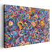 Dominated by rich blues and purples that provide a serene backdrop, the canvas bursts with accents of warm yellows, oranges, and reds that infuse the piece with vitality and contrast. Secondary hues like greens, pinks, and teals add depth and complexity, creating a visual feast that delights and intrigues.