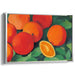 Introducing "Tangerine Abstraction," a captivating modern realist orange still life canvas art print that brings the essence of oranges to life against a lush green backdrop. This vibrant artwork showcases a cluster of oranges, each bursting with bold, saturated hues of orange, with one fruit sliced open to reveal its juicy, succulent interior.