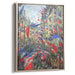 In "The Rue Montorgueil with Flags," Monet's signature Impressionist style shines through. His swift, feathery brushstrokes dance across the canvas, capturing the fleeting effects of light and movement. The vibrant colors and high contrast create a sense of dynamism, as if the viewer is standing amidst the lively crowd.