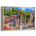 Introducing 'Timeless Echoes Amidst Verdant Hues,' a mesmerizing watercolor art piece that immerses viewers in the charm of an ancient town, capturing the allure of classical architecture and the tranquility of historical remnants. This captivating artwork portrays a detailed old town bustling with life, with its central focus on grand columns and arches that whisper tales of a storied past.