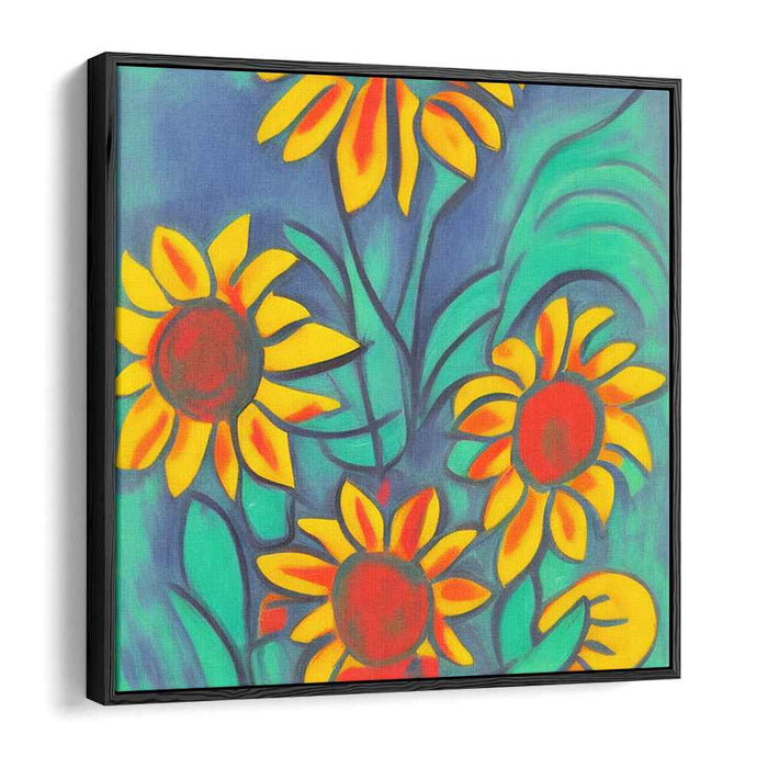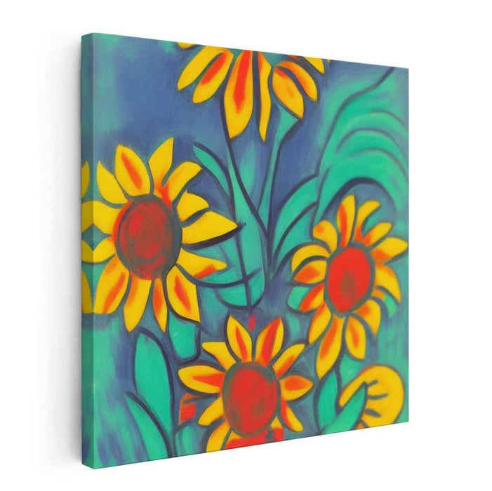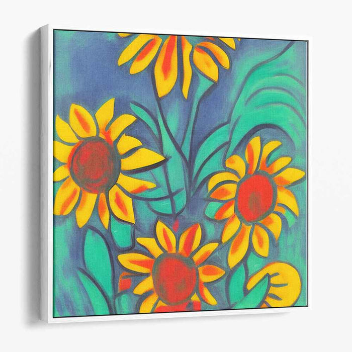 Introducing 'Trail of Colorful Petals: Vibrant Post-Impressionist Floral Canvas Art Print,' a captivating piece that brings the essence of a blooming sunflower field into your space. This artwork bursts with warmth and joy, featuring sunflowers in full bloom with their radiant yellow petals and deep red centers that create a mesmerizing contrast, drawing the viewer into a world of vibrant colors and natural beauty.