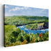 Introducing "Tranquil Aquarelle View," a mesmerizing watercolor landscape canvas art print that immerses viewers in a serene riverside setting, capturing the tranquil allure of nature in its full splendor. This captivating artwork showcases a vibrant river meandering through lush, green hills, its waters shimmering under a crystal-clear blue sky.