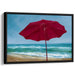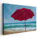 Tranquil Beach Day: Red Umbrella Seascape Canvas Art Print