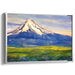 Introducing the majestic canvas art print, 'Tranquil Dreamland Overture,' a breathtaking depiction of a towering mountain illuminated by the gentle caress of sunlight against a peaceful sky. This captivating artwork showcases a snow-capped summit in a harmonious blend of vibrant blues and serene whites, standing in stark contrast to the verdant greenery that unfolds below.
