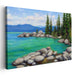 Introducing 'Tranquil Forest Waters: Serene Lake and Lush Pines Landscape,' a mesmerizing canvas art print that transports viewers to the peaceful shores of a serene lake, enveloped by verdant pine trees and rugged rocks. This captivating artwork captures the essence of a tranquil oasis, inviting observers to immerse themselves in the beauty of nature's untouched splendor.