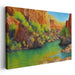Step into the tranquil beauty of 'Tranquil Gorge Tapestry,' a mesmerizing canvas art print that whisks you away to a serene riverside haven. This artwork expertly captures a verdant, lively river meandering peacefully amidst towering canyon walls, creating a scene of awe-inspiring natural splendor.