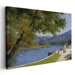 Introducing "Tranquil Riverside Escape," a mesmerizing canvas art print that transports viewers to a serene riverside setting, enveloped in the peaceful embrace of nature's beauty. This exquisite artwork features a dominant majestic tree in the foreground, adorned with lush green leaves that naturally frame the picturesque vista beyond.