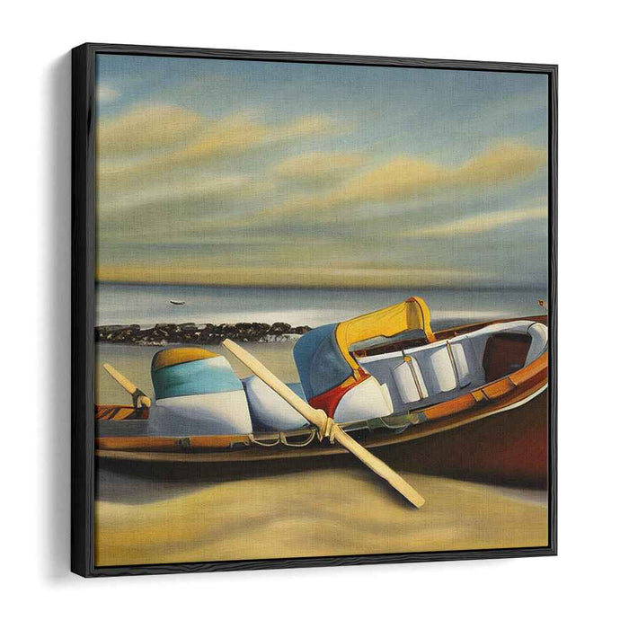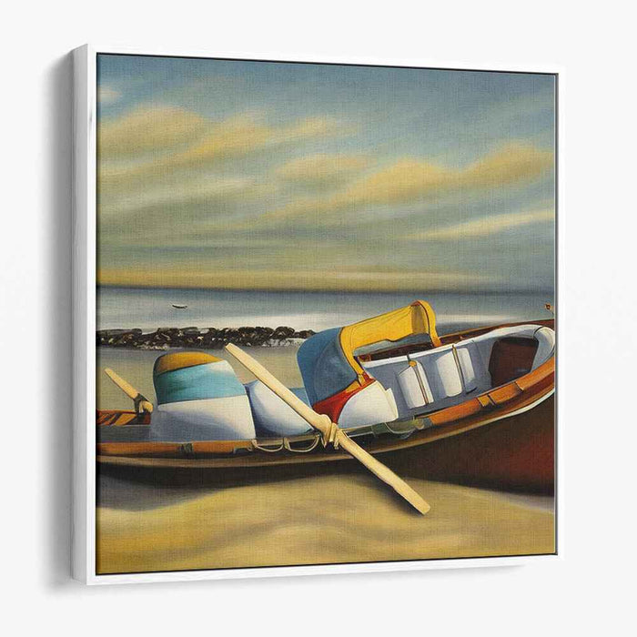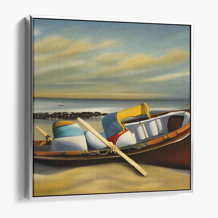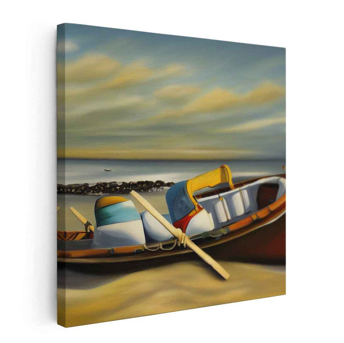 Introducing 'Tranquil Shoreline Adventure,' a mesmerizing coastal canvas art that transports you to a serene seaside setting, capturing the essence of tranquility and solitude by the shore. This captivating artwork features a beautifully depicted rowing boat resting peacefully on the sandy beach, inviting you to immerse yourself in a moment of quiet contemplation.