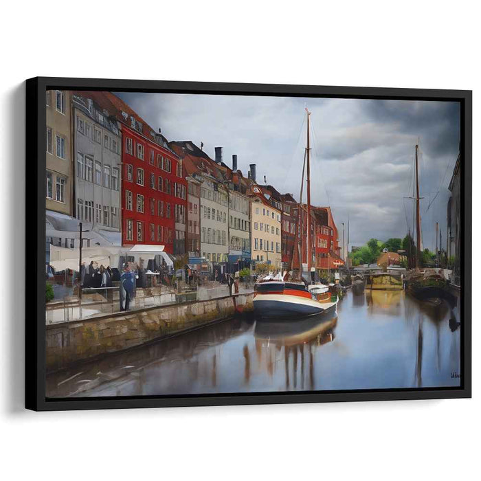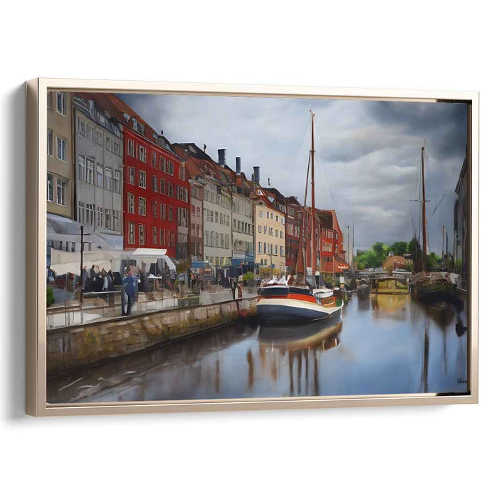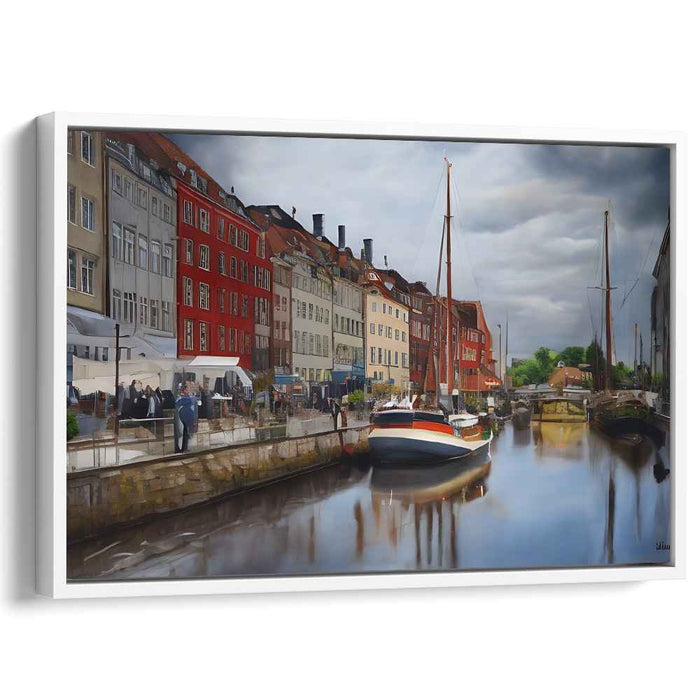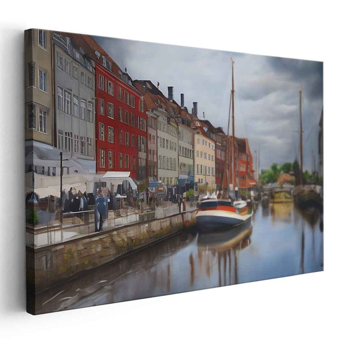Tranquil Waterfront: Realistic European Canal Scene Canvas Art Print