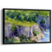 The artist skillfully employs watercolor techniques to create a soft and dreamy effect, predominantly using shades of green and blue. The cliffs are delicately painted in hues of gray and beige, seamlessly blending with the verdant foliage above. The tranquil water below is depicted in soothing blue tones, adding a profound sense of calm and harmony to the composition.