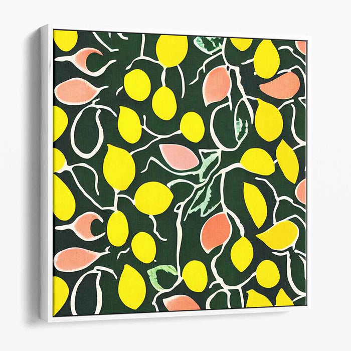 The strategic use of negative space and the rhythmic repetition of the fruit patterns create a dynamic yet harmonious composition that is both lively and soothing. This artwork is a perfect fit for spaces that embrace modern aesthetics and vibrant colors, injecting a burst of freshness and zest that revitalizes any room.
