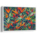 Immerse yourself in the lush beauty of "Tropical Plumage Dance: Bird of Paradise" canvas art print, a captivating masterpiece that transports you to a vibrant botanical oasis dominated by the striking Bird of Paradise flowers. This artwork weaves a rich tapestry of fiery orange and red petals against a backdrop of lush green foliage, creating a scene that bursts with tropical allure and natural splendor.