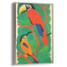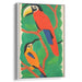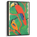 'Tropical Plumage Parade' resonates with the vibrant art movements of Fauvism and Modern Folk Art, drawing parallels to the works of Henri Rousseau and Frida Kahlo. Ideal for spaces craving a touch of the wild, this piece is perfect for eclectic living rooms, vibrant children's rooms, or nature-themed offices, infusing any room with a splash of color and a sense of tropical serenity.