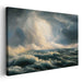 The artist skillfully conveys the dynamic motion of the sea with waves cresting and frothing, depicting the relentless power and movement of the ocean. The stormy sky above, painted in shades of grays and blues, adds to the atmospheric intensity, while a ray of light breaks through, infusing the scene with a glimmer of hope amidst the chaos.