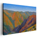Introducing the mesmerizing canvas art print, 'Twilight Peaks Beyond: Sunset Over Majestic Mountain Range,' a captivating portrayal that whisks viewers away to a majestic mountain range basking in the warm embrace of a sunset. The painting showcases undulating hills and rugged cliffs painted with a brilliant fusion of vibrant hues, crafting a scene that exudes both tranquility and awe-inspiring beauty.