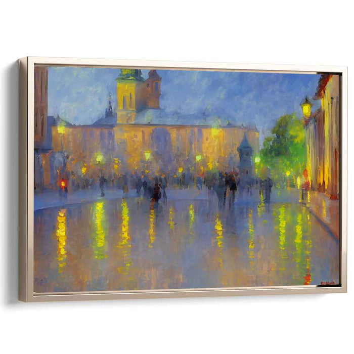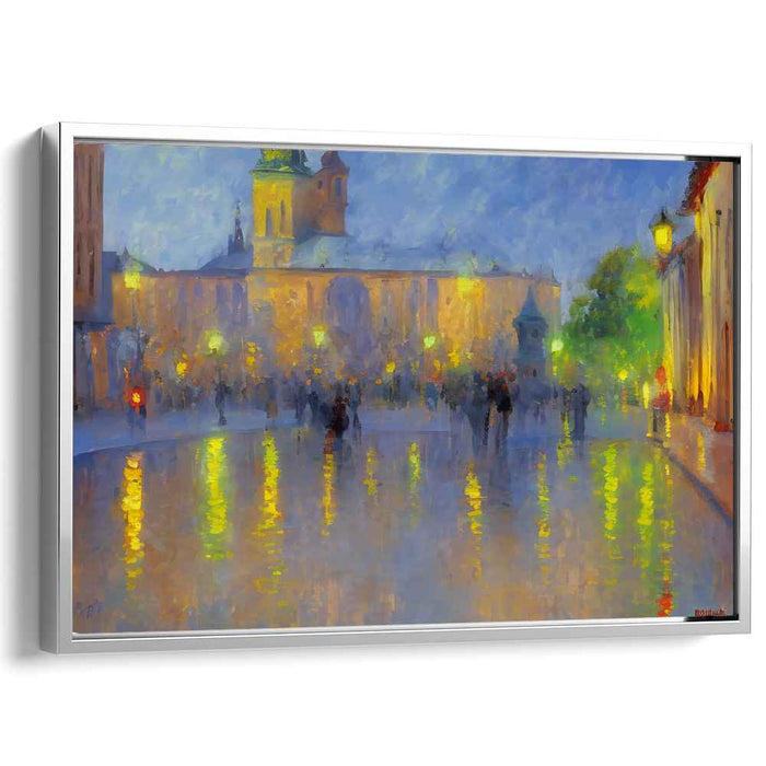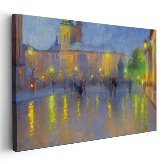 Twilight Urbanscape: Impressionist Cityscape Evening Canvas Art Print