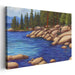 Introducing 'Twilight Waterside Impressions: A Luminous Lakeside Landscape,' a mesmerizing piece that immerses viewers in a tranquil lakeside haven, where the shimmering waters meet a rugged, sun-kissed shoreline. This captivating artwork captures a scene framed by a vibrant mix of evergreen and deciduous trees, painting a picture of nature's beauty in its purest form.