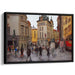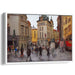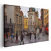 The mood of the artwork exudes a sense of dynamism and vibrancy, perfectly encapsulating the energy and movement of urban life. Ideal for spaces like living rooms or offices, this piece invites viewers to immerse themselves in the detailed and lively depiction of a European city, where pedestrians go about their daily routines against a backdrop of historical architectural splendor.