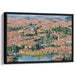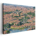 Introducing 'Urban Symphony Dusk Dream,' a mesmerizing canvas art print that transports viewers to the enchanting streets of an Italian city, reminiscent of the timeless beauty of Florence. This captivating artwork intricately captures the essence of the cityscape, showcasing a dense array of terracotta rooftops adorned with lush greenery, while a graceful river, likely the Arno, elegantly winds its way through the urban landscape.