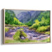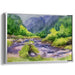 Immerse yourself in the tranquil beauty of 'Veiled Falls: Lush Mountain Stream in Watercolor', a captivating canvas art print that encapsulates the serenity of a mountain stream meandering through a verdant landscape. This artwork harmoniously blends soft greens, deep blues, and subtle grays, creating a calming and soothing ambiance that transports viewers to a peaceful oasis.