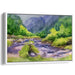 Veiled Falls: Lush Mountain Stream in Watercolor Canvas Art