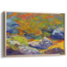 Step into the enchanting world of 'Verdant Brushstrokes Dance: A Lush Impressionist Landscape,' a vibrant canvas art print that encapsulates the beauty of autumn in a mesmerizing blend of colors and textures. This artwork transports you to a serene landscape painted in the rich, warm hues of fall, where a tapestry of multi-colored leaves in fiery oranges and deep reds dance alongside cool blue and gray rocks.