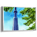 The predominant shade of blue dominates the sky and the tower, forming a tranquil and cohesive setting that beautifully contrasts with the lively green leaves dancing at the pinnacle. The loose and fluid watercolor technique adds a sense of lightness and movement, infusing the scene with a vibrant and dynamic essence. Sunlight filtering through the leaves creates a captivating interplay of light and shadow, further enriching the composition.
