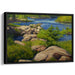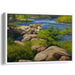 Introducing 'Verdant Waterside Impressions: A Lush Riverside Landscape,' a mesmerizing canvas art print that transports you to the serene embrace of nature, right within your living space. This artwork expertly captures a tranquil riverside vista, where a meandering river peacefully navigates through a rugged terrain adorned with verdant foliage and sun-kissed rocks.