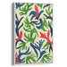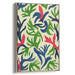 Introducing 'Vibrant Flora Dance,' a captivating canvas art print that breathes life and color into any space with its vibrant and dynamic composition of abstract floral and avian shapes. This artwork exudes a sense of lively harmony, where organic forms intertwine on a fresh, light cream backdrop, allowing the primary colors of green, red, and blue to burst forth with energy and vitality.
