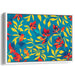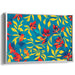 Introducing "Vibrant Floral Dance: Turquoise and Fiery Red-Orange Canvas Art Print," a mesmerizing piece that brings a burst of energy and color into any space. This artwork features a dynamic floral pattern that seems to sway and twirl across the canvas with vivacious vitality. The central theme revolves around a rich turquoise blue backdrop that sets the stage for the vibrant yellow and fiery red-orange leaves and blossoms to shine.