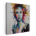 Introducing 'Vibrant Muse,' a mesmerizing canvas art print that captures the essence of a dynamic and colorful portrait, showcasing a young woman in an expressive and vibrant style that is sure to captivate any viewer. The artwork portrays a young woman with captivating blue eyes that seem to pierce through the canvas, drawing one into her world.