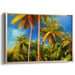 Immerse yourself in the tropical serenity of 'Vibrant Palm Paradise Canvas Art: A Vibrant Palm Paradise,' a captivating canvas art that transports you to a lush tropical oasis filled with towering palm trees swaying under a clear, azure sky. This exquisite artwork showcases a rich tapestry of vibrant green hues, with the palm fronds gently rustling, creating a serene and tranquil ambiance.