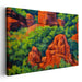 Introducing 'Vibrant Red Rocks,' an enchanting impressionist landscape canvas art print that transports viewers to a mesmerizing natural scene featuring dramatic red rock formations harmoniously set against a rich, lush green backdrop. This captivating artwork, with its vibrant colors and bold brushstrokes, captures the essence of the landscape in a dynamic and lively manner.