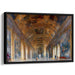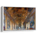 Introducing "Vintage Love Tale," a mesmerizing canvas art print that transports viewers to the opulent halls of a grand European gallery, steeped in history and magnificence. This artwork masterfully captures a long corridor exquisitely decorated with golden accents and captivating murals adorning the ceilings and walls.