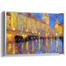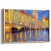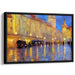 The artist's skilled use of impasto technique is evident in the thick, textured brushstrokes that imbue the painting with a tactile quality, enhancing the reflective surfaces and the shimmering lights of the scene. The primary hue of golden yellow, harmonized with deep blues and subtle grays, evokes a sense of warmth and nostalgia, enveloping the viewer in a moment frozen in time.