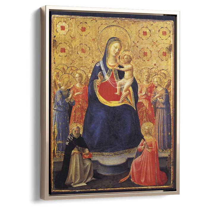 Step into the ethereal realm of Fra Angelico's masterpiece, "Virgin and Child with Sts. Dominic and Catherine of Alexandria" (1435), now meticulously recreated on high-quality canvas. This heavenly scene invites you to witness a sacred encounter, where divine grace and earthly devotion intertwine.