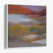 Immerse yourself in the tranquility of nature with "Visions Beyond Nature," an abstract landscape canvas art print that transports you to a serene desert oasis glowing under the warm embrace of a setting sun. This captivating artwork showcases a harmonious dance of colors, juxtaposing the vibrant earthy reds and oranges of the desert cliffs against the soft, cool tones of the sky and distant mountains.